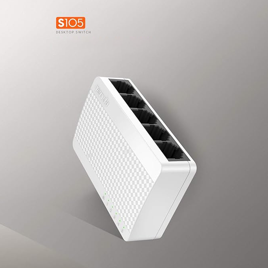 - Installation : Branchez le Tenda S105 à une prise électrique. Connectez-le à votre routeur ou à un switch réseau principal à l’aide d’un câble Ethernet.